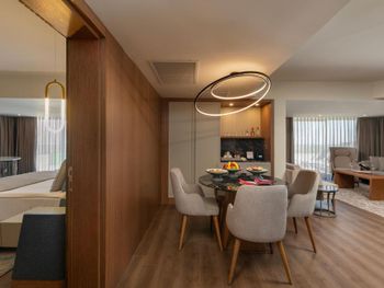 Очень большие вопросы к ремонту, почему везде капает с потолка, зачем в номере дырка на стене и что муравьи делают в спальне и на балконе (2-ой этаж). Честно говоря, хочется отель немного освежить. При этом всем действительно отдел взаимодействия с клиентами решал вопросы максимально оперативно и такое отношение подкупает. Еще одним существенным минусом является отсутствие круглосуточного врача на территории комплекса. Врач работает, но до 18, как-то странно, с учётом того, что травму можно получить в любой момент. Но опять же, это большой вопрос именно к структуре отеля, так как нам предложили вызвать скорую и пытались помочь со страховкой.