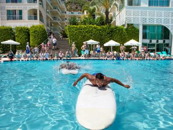Прочитав отзывы что там очень шумно весь день тусовка и не для семейного отдыха меня это привлекло.хотел именно целый день тусовать.но увы.если вы семейный и хотите целый день спать около бассейна ,моря,в номере то это ваш вариант.в 22.00 отель мертвый.все уходять спать.99 процентов семейные и с детьми.заходишь в лобби бар в 24.00 за стойкой бара сидит малыш лет 6 и пьет лимонад.советую очень семейным парам которые не хотят тусить и просто живут хотят тишины отбой 22.00 подъем 08 00.