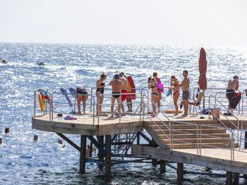 Всего один пластиковый пантон для захода в море, скапливается много людей…