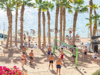 Отель был заполнен , много украинцев , казахов , белорусов , русских не много.Очень , ну очень много детей разного возраста, пионерский кричащий лагерь.Хорошие напитки в баре на пляже и в лобби.Баночное пиво и газ.напитки , особенно хороши орешки.