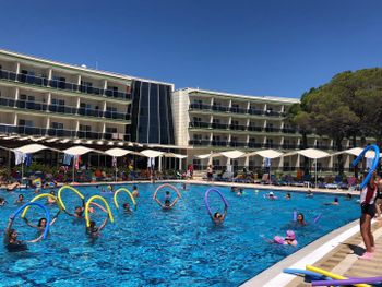 В нашем отеле, расположенном на площади 32 000 м2, есть 4 бассейна, аквапарк, спортивные площадки, прогулочные зоны, отдельные зоны для занятий и развлечений для малышей и взрослых в большом саду.