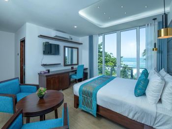Проживали в отеле 10 дней. Все очень понравилось! Ребята, сотрудники отеля окружили нас заботой и вниманием (особенно Момо и Лахиру), сделали наш отдых незабываемым! Завтрак с видом на океан, всегда свежие фрукты, свежевыжатый сок, каша, йогурт, омлет, сосиска, местные блинчики., чай или кофе. Все вкусно и сытно. Сам номер очень хороший, просторный, много света, есть холодильник, фен, шампунь,гель для душа, большой шкаф, стол, стул, два кресла, большая и очень удобная кровать. В комнате нет никакой мошкоры и живности Кондиционер работал отлично. Было комфортно! Вид из окна-просто невозможно отвести взор! Тихо и спокойно! Океан у Вас под окном. Жаль, что там нельзя купаться. Но это не проблема. Недалеко много красивых, почти безлюдных пляжей ! Около отеля видели бурундучков, обезьян, павлинов! Иногда обедали и ужинали в ресторане отеля, оказалось, что там даже дешевле и вкуснее, чем везде! Рядом большой супермаркет Keells, булочные, фруктовые магазинчики, рынок. Все в пешей доступности. Расчет за проживание в отеле не берут при заселении, как везде, а в день отъезда. Расчет предпочитают в рупиях. Вообщем, отель рекомендуем. С удовольствием вернемся снова.