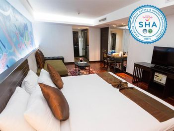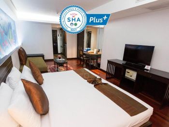 Хорошее расположение относительно транспортных узлов: несколько минут пешком до двух станций надземного метро (легко доберетесь до важнейших торговых центров) и до пирса на реке (самый удобный путь к историческому центру и достопримечательностям). Персонал приветлив и готов помочь. Особо следует отметить приличный английский - их можно понять и они понимают вас. Хорошие, достаточно разнообразные завтраки (по меркам бюджетного отеля). Вечером на крыше работает ресторан, немного дороговато, но вкусно, можно поесть рядом с бассейном, который открыт до 11 вечера, что удобно - приятно искупаться, промотавшись весь день по Бангкоку. Номера просторные, намного больше, чем будет в других отелях такого класса. Раньше в отзывах жаловались на "усталость" номеров - сейчас явно сделан косметический ремонт, все чисто, коврик у дивана новый. Мы просили два номера рядом - рядом оказался номер выше классом - без нашей просьбы и бесплатно сделали апгрейд, и один из номеров дали не делюкс, а джуниор сюит (отель был заселен не полностью).