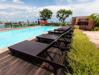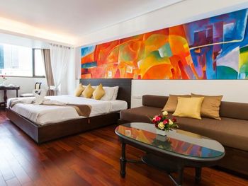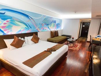 Я живу в Паттайе, и поехала в Бкк на выходные, для смены обстановки. Поэтому отель выбирала с позиции не только переночевать,но и получить удовольствие от нахождения-посозерцать виды мегаполиса, искупаться под зажигающиеся окна высоток вокруг, уснуть на хрустящих простынях и с утра позагорать,любуясь дневными видами Повелась на отзывы, и зря-это очень скромный отель максимум на 6, никак не на 8 .2, и тем более не на 10! Номер большой,но старый.Очевидно ремонт пару лет назад был,но шкафы пахнут древностями) кухня замытая, трогать неприятно. Постельное белье-синтетика (это вот прям фу). Поселили в номере 208-вид в стену соседнего здания (через метр). Рядом с номером кафе,где проходит завтрак,то есть греметь посудой начинают с 6 утра -именно так я и проснулась! Хотя мне без надобности-завтрак я не включала. Грязный кондиционер (общая система). Нет русского канала,я люблю перед сном посмотреть немного. Идти от сапан таксин недалеко,но важно сразу выйти на стороне отеля, иначе придется топать до Сурасак,перейти дорогу раньше невозможно. Улочка где отель-место помоек, вечером и утром крайне неприятно здесь проходить. Мне искренне жаль,что кто-то дает высокие оценки таким отелям. За 50$ за ночь в Бкк можно найти вариант намного интереснее.