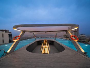 Бассейн, сам отель новый, номера хорошие, есть все необходимое в душе. При звезда комплимент - тарелка фруктов. Завтраки неплохие, местоположение - самый центр)