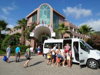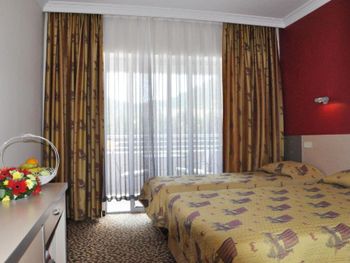 Бюджетно. Все неплохо. На пляж и с пляжа, по расписанию, предоставляется трансфер-пешком 25-30минут идти.Очень хороший пляж - песчаный. В центр вечером тоже есть трансфер- идти минут 20.Очень хорошо была организована "Турецкая ночь"- настоящий праздник! Питание нормальное. Из окна - красивый вид на горы.Территория отеля небольшая, но достаточно зеленая.Уборка номера и смена белых полотенец ежедневно.