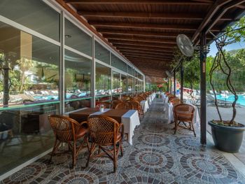 Отличный отель для спокойного отдыха. Замечательная поддержка сотрудников отеля. Считаю преимуществом отдаленность отеля от моря, т.к. после вкусной еды приятно прогуляться на пляж пешком (буквально 15-20 минут). К тому же отель находится у подножья горы, где растут сосны, поэтому воздух просто волшебный! Очень часто ходит автобус на пляж и вечером в центр города - это очень удобно. Присмотрела этот отель для отдыха своих пожилых родственников. Думаю, им будет здесь комфортно.