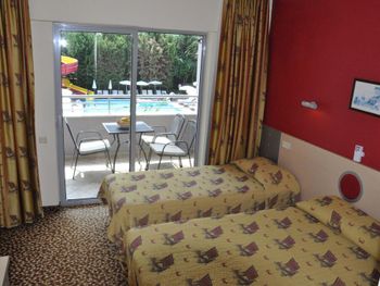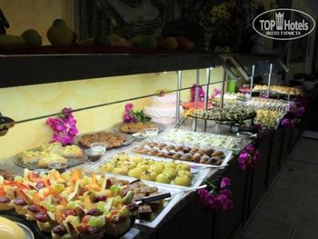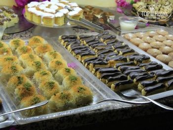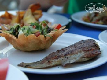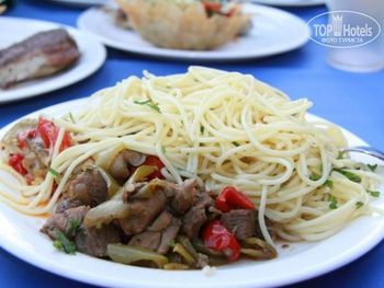Все соответствует описаниям. Никаких особых изысков, но всё есть. На обед и ужин либо что-то одно мясное, либо рыба всегда будет. Супчики легонькие. Сладости. И множество овощей. )) Готовых салатов не пробовала - не по моей части. Всё остальное свежее, и голодными не ходили. Можно еще и блинчиками догнаться.)) Брали из выпивки вино (ну обычное столовое сухое) и пиво(светлое, вполне себе). Персонал по-русски говорит весь, до уборщиц. По чистоте всё ОК, барышни приходили каждый день, мыли-пылесосили... Местоположение ... прямо скажем, на отшибе, зато не заблудиться, идешь на гору с флагом - попадаешь домой. )) Зато уже через дорогу настоящий лес, вечером на пару градусов прохладнее, и сосной пахнет, особенно с утра. На пляж возят, но можно и дойти. 20 минут по ровной местности, по проездам мимо апартаментов - для нас было не проблема. Кстати, вечером и в город возят. Оттуда тоже 20 минут пешком. В целом, нормальный вариант за эти деньги.