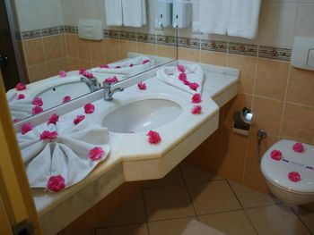 - В описании указан бесплатный вай-фай в комнате, однако как только я заселился, мне сказали, что в комнате не ловит. Только в лобби. - Горячей воды нет. Она еле теплая, что расстроило больше всего. Пришлось идти купаться в море и так соленым и уехал :) - Кондиционер диктатор просто. Пульт закрыли крышкой и прибили к стене. Можно нажать только вкл/выкл. Ни градус настроить ничего. - Кровать не сказал бы что удобная, однако простыни были чистыми. - Проблема с сантехникой. Иногда вода в туалете капает будто бы кто-то кран приоткрыл. Ходил смотрел, краны закручены... - Минибар. Включается как старый жигули. Пару раз вздрагивал, еле привыкнул. Работает тоже шумно, многим это не понравится.