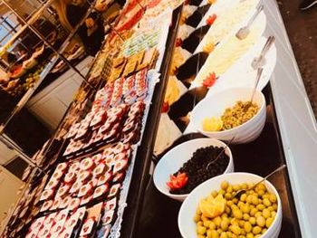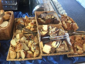 Из съедобного: 1. Сыр Чеддер 2. Хлеб 3. Чай/Кофе 4. Халва и пару сладостей 5. Если повезет то варенный картофель. Из НЕсъедобного: 1. Выраженно красного цвета колбасные изделия 2. Салаты сделанные вчерашней колбасы с майонезом 3. Всякие зажаренные "штуки" 4. Нарезка из вялых фруктов