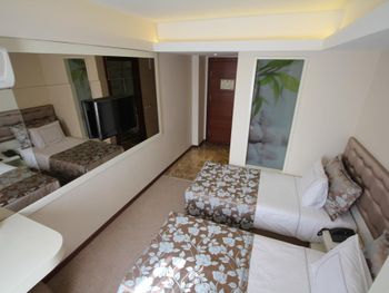 Встреча в отеле. Номер не соответствовал заказу, хотя заказ оформлялся за 3 недели до заезда. Вас запихивают в любой номер , куда считают нужным для себя. Расположение номера, указанное в бронировании не соблюдается. При заселении, в номере было очень душно. При температуре наружного воздуха +32С обслуживающий персонал не смог включить кондиционер. Мои просьбы на ресепшене о проверке кондиционера практически игнорировались. Ответ: через 5 минут. Ждали около получаса в неимоверной жаре. Халаты в номере отсутствуют. В номер, рассчитанный максимум на 2 человека запихано 3 кровати. Именно запихано. Телевизор настроить на программы российского ТВ так и не смогли. Исключительно турецкое ТВ. Бельё, которым застелены кровати больше серое, чем белое. Завтрак вообще поражает! В августе месяце в качестве десерта отсутствуют арбузы, которыми завален весь Стамбул! Тарелка с зелёными яблоками. Время завтрака с 07-00 до 10-00. В первый день на завтрак мы с семьёй пришли к 09-00. Шведский стол был в полуразобранном состоянии. На второй день, в связи с отъездом пришли к 07-00. Шведский стол ещё не был готов. Горячие блюда приготовили примерно минут через 20 после декларированного начала завтрака. Ассортимент блюд весьма и весьма скуден. Соков нет вообще. Вместо них разбавленная водой химия. Посещал Стамбул неоднократно. Останавливался в этом отеле, забронированном компанией, где я работал. В этот раз путешествовал с семьёй и ошибочно забронировал вновь номер в этом отеле. Хотя не считаю себя особо притязательным к условиям проживания, но здесь всё вызывает только раздражение. Рекомендую всем желающим посетить Стамбул обходить это заведение за километры. Есть достаточно отелей по этой же цене, но с гораздо лучшим сервисом. Вопрос к руководству отеля. Кто пишет вам положительные отзывы на сайте? Претензия к Booking.com - проверяйте качество услуг в отелях, которые вы рекомендуете.