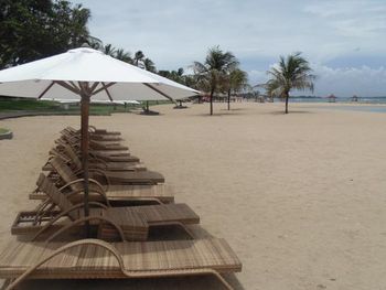 В душе нет ни каких полочек, поэтому шампунь и все остальное приходится ставить на пол. На пляже всего 14 лежаков.
