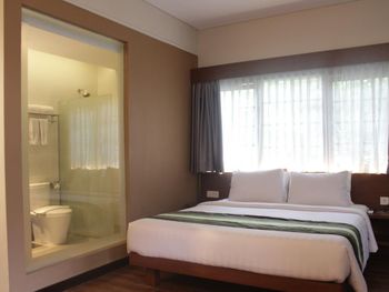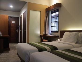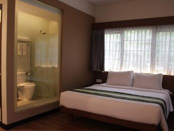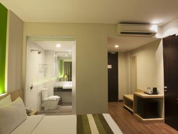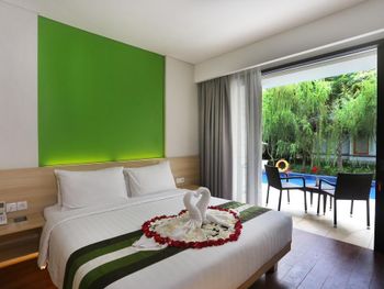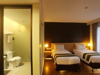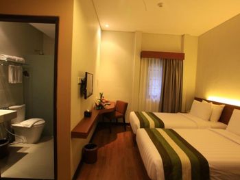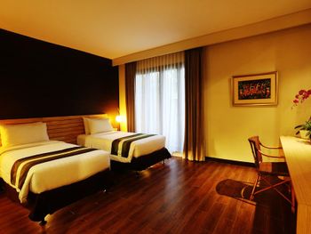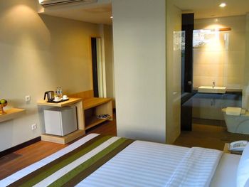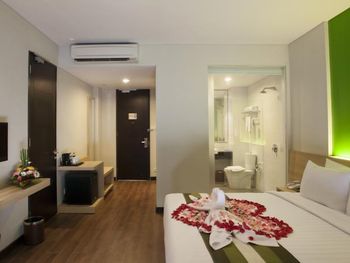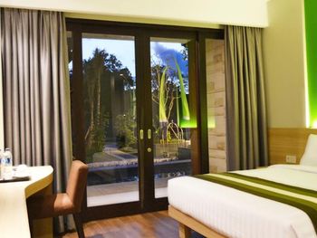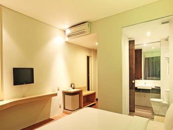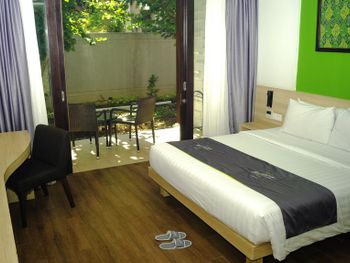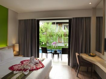 Modern rooms at Grand Whiz Hotel Nusa Dua Bali are air-conditioned and fitted with a flat-screen TV, safety deposit box, electric kettle and a fridge with a minibar. Rooms also come with a terrace with seating area overlooking the garden. The private bathrooms have shower facilities and free toiletries.