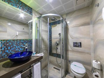 Очень маленький номер, не развернуться , одежду разместить негде было, с чемоданом для ручной клади было сложно разместиться в номере для двоих. Холодной воды практически не было из бачка унитаза лился кипяток. Вечером принять душ было не реально кипяток, утром умываться опять кипяток. Персонал не смог пояснить что с водой. Завтрак скудный , такие только в отелях без звёзд бывают, завтрак в отеле не соответствует 4 звездам