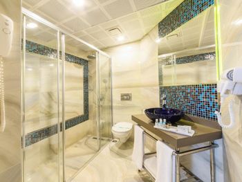 Номера с просторными ванными комнатами станут идеальным местом для отдыха после насыщенного дня, проведенного в городе. В каждом номере есть мини-бар и кондиционер.
