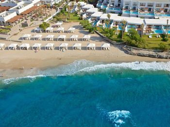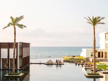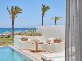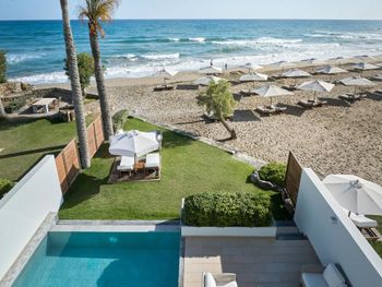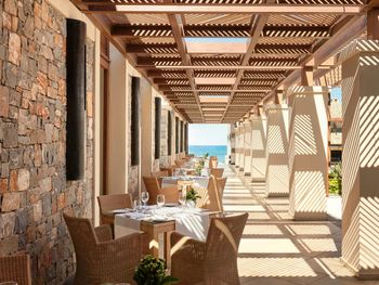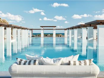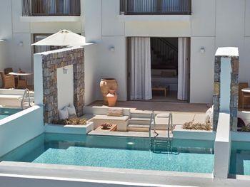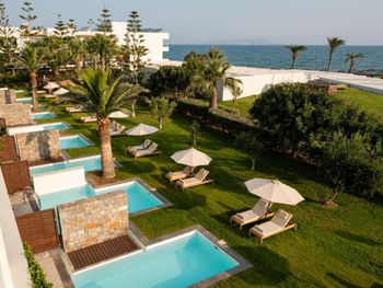 В отеле понравилось следующее : расположение отеля - от аэропорта на такси ехать не больше 30 минут. Красивая и ухоженная территория, отель имеет концептуальную архитектуру, продуманные зоны отдыха, а также зоны общественного пользования - основной ресторан и рестораны a la carte. Особое внимание хотел бы уделить бассейну - он олимпийского размера с морской водой. Зоны с лежаками доступны как у бассейна, на пляже, так и на зелёной лужайке с прекрасным видом на море. Питание в отеле отличное. Завтраки вкусные, разнообразные. Ужин в основном ресторане тоже на пятерку, есть и мясные и рыбные блюда (ягнёнок, вырезка, курочка, мидии, рыба, суши, самими и пр.) рестораны a la carte тоже вкусные, но если у вас не полупансион, то заказ по меню на персону около 100€ без спиртного. Персонал приветливый, услужливый, доброжелательный. Уборка в номере каждый день (замена полотенец, постельного белья, бутилированная вода в номер). Номер просторный, с балконом. Есть как душевая кабина так и ванна. В номерах на первых этажах есть собственный бассейн. В пешей доступности супермаркет, а также автобусная остановка и стоянка такси. Рядом, в 10 минутах езды от отеля городок Херсонисос, где можно погулять и насладиться красивыми видами.