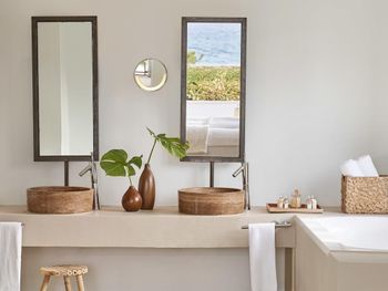 В номерах, люксах, бунгало и на виллах отеля Grecotel Amirandes имеются французские окна и установлена дизайнерская мебель. Интерьер выполнен в мягких тонах. В числе стандартных удобств — кондиционер, сейф, мини-бар и телевизор с плоским экраном. В собственной ванной комнате есть ванна, тапочки, халаты и бесплатные туалетно-косметические принадлежности. В распоряжении гостей некоторых номеров собственный бассейн.