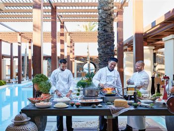 В главном ресторане Amirandes на завтрак и ужин предлагают блюда традиционной средиземноморской кухни в сочетании с международными деликатесами. Гости также могут заказать изысканные блюда интернациональной кухни в ресторане Lago Di Candia с впечатляющей обстановкой. В ресторане Minotaur, уникальный интерьер которого украшает впечатляющая коллекция подлинной керамики Пикассо, готовят разнообразные блюда итальянской кухни. Кроме этого, гости могут посетить бар у бассейна, бар у лагуны и бар на пляже.