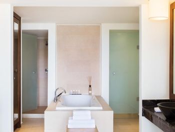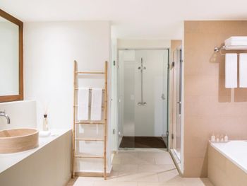 Мы жили в двухэтажной вилле, так на первом этаже очень некомфортный санузел с душевой ( не более 1 кВ метра на все) .