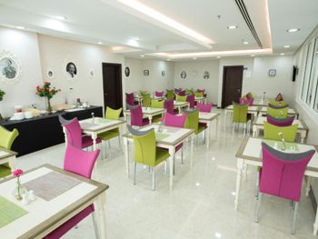 На территории есть ресторан, в котором можно заказать блюда национальной и континентальной кухонь. Также, есть обслуживание номеров. Завтрак сервируют по системе «шведский стол».