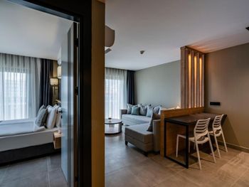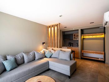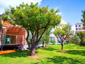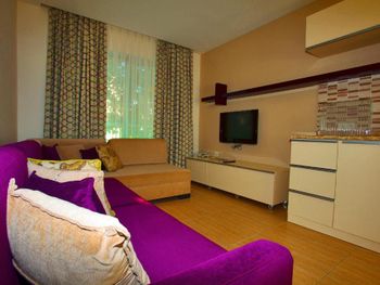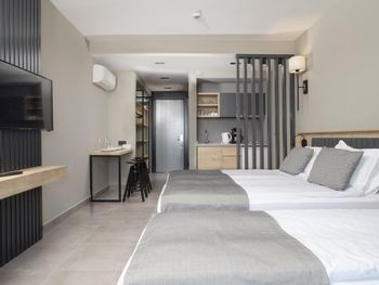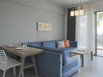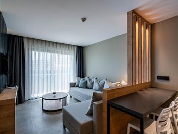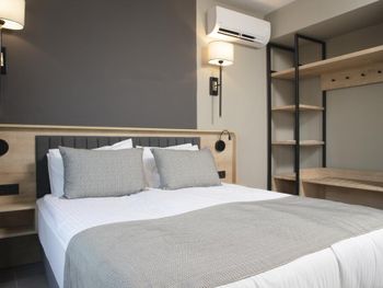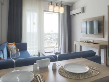 Современные номера апарт-отеля Green Garden оформлены в нейтральных тонах и обставлены деревянной мебелью. На полу настелен ламинат. Во всех номерах, оборудованных кондиционером, к услугам гостей телевизор со спутниковыми каналами и гостиная зона.