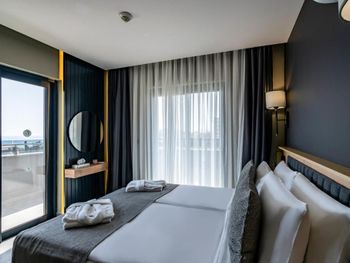 Букинг не указывает, какой будет вид из номера, может повезёт и вид будет на сад, а может на футбольное поле)) Номеров, говорят, нет других свободных, однако на сайте они есть. Уборка. Это что-то ужасное. Столы никогда не вытирали, ни в ванной столешницу, ни в спальне. Казалось, что приходили поменять полотенце и чутка веником пол подмели. Ощущения чистоты не было вообще. А в последний день проживания на четвертом этаже увидели в номере таракана. Что же тогда творится на нижних этажах??? Даже стало не по себе. Не понравилось отношение персонала, ощущение, что им все должны. На гостей будто плевать. В столовой на столах свободно сидят коты. Это очень круто, что в стране такое отношение к животным, но когда кот посидел на столе, где лежат столовые приборы, которыми ты возможно дальше будешь пользоваться - кажется это перебор. Была система питания завтрак + ужин. На ужине все напитки были за дополнительную плату. Ладно бы за сок или алкоголь, но даже кипяток и пакетик чая были платные. Утюга в номере не было, только по запросу и за дополнительную плату. Предупредили заранее, что будет нужен утюг, а потом сказали, что нет свободных. Только когда поругались, нашелся утюг. Крытый бассейн маленький на такое количество людей, вода очень даже холодная. Ожидали чего-то большего, какое-то разочарование за немаленькие деньги. Город мне понравился, но в отель не вернусь и никому не посоветую.