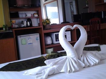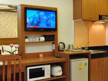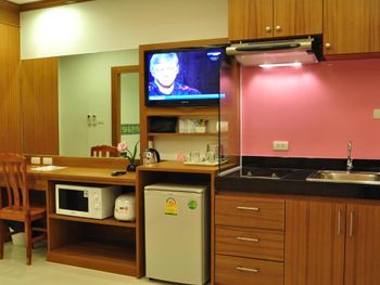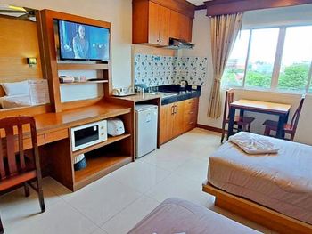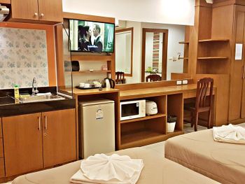 Уборка в номере была всегда в обеденное время, когда все отдыхали дома от жары. Поэтому убрались у нас только один раз, когда нас не было в номере. Посуда убитая, купили сковородку и кастрюльку чтобы готовить, ведь ехали в апартаменты чтобы самостоятельно готовить морепродукты. Казалось раньше что тайцы очень улыбчивые люди, но это не касается персонала этого отеля, угрюмые и недоброжелательные. Как будто одолжение делают, а ведь мы не бесплатно там жили.