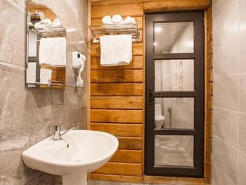 Рядом лес, чистый горный воздух, огромная терраса, территория около отеля. Но главное люди, гостеприимные, добрые, отзывчивые. Спасибо большое!