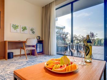 Это вообще не 5*( заплатили 1200$за 4 дня в люксе) Это даже не 4* Сервиса-0 Плохая уборка номеров. Ни разу за 4 дня не убрались нормально! В спальне только дырка от телевизора)) обещали вернуть его на место, так и не дождались. Персонал не профессионалы, никакие просьбы не исполнены. Шла с огромным чемоданом и пакетами стояли на ресепшн 4 сотрудника, помощь даже не предложили. Ресторан- ужас Завтраки- ужас. Есть нечего. Мусор разложен по разным мискам. В номер даже воду не приносят, ссылаясь на то что в ресторане не хватает людей для рум сервиса. Ресторан всегда пустой и 4!!! Официанта фигнёй страдают. Рядом ни магазинов, ни ресторана. Пляж рядом не ухоженный, через жд пути. Адрес свой они пишут как в Батуми, но по факту за его пределами. До города ехать час, вечная пробка в обе стороны. В общем за поездку побывала в трех отелях и заметила что везде проблема с сервисом! Работать не хотят совсем. Деньги выброшены на ветер!