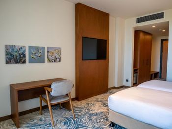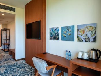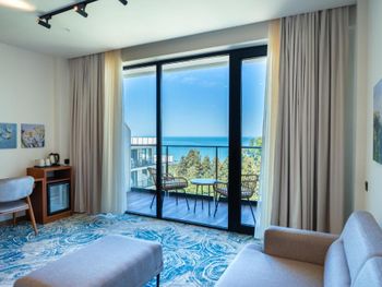 Это вообще не 5*( заплатили 1200$за 4 дня в люксе) Это даже не 4* Сервиса-0 Плохая уборка номеров. Ни разу за 4 дня не убрались нормально! В спальне только дырка от телевизора)) обещали вернуть его на место, так и не дождались. Персонал не профессионалы, никакие просьбы не исполнены. Шла с огромным чемоданом и пакетами стояли на ресепшн 4 сотрудника, помощь даже не предложили. Ресторан- ужас Завтраки- ужас. Есть нечего. Мусор разложен по разным мискам. В номер даже воду не приносят, ссылаясь на то что в ресторане не хватает людей для рум сервиса. Ресторан всегда пустой и 4!!! Официанта фигнёй страдают. Рядом ни магазинов, ни ресторана. Пляж рядом не ухоженный, через жд пути. Адрес свой они пишут как в Батуми, но по факту за его пределами. До города ехать час, вечная пробка в обе стороны. В общем за поездку побывала в трех отелях и заметила что везде проблема с сервисом! Работать не хотят совсем. Деньги выброшены на ветер!