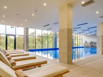 Бассейн оказался холодным, и в целом в спа было прохладно. Мы ездили зимой в отель с ребенком именно, чтобы поплавать и посидеть в сауне. Ребенок в воду не смог залезть, жена лежала на лежаке под полотенцем. Хамам или не работал совсем или сам по себе странный - в нем температура была как и во всем остальном спа и влажности с паром не было. В общем если ориентируетесь именно на спа зимой, то подумайте, в остальном все было ок.