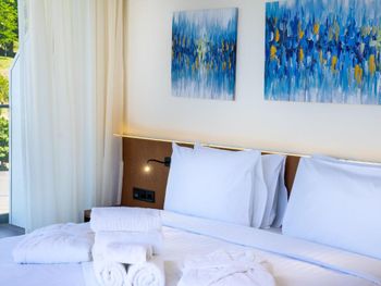Надо было просить,убирать....и часы уборки не всегда было удобно.. Соседи были ужасные ,не знают что сидеть часами на балконе и болтать нельзя,слышно ужасно!!! Сверху были дети ,бегали все время,хотелось больше тишины,еда вкусно ,но однообразно..и надо идти к морю по лестнице и вниз и наверх!!!! Не всем подходит