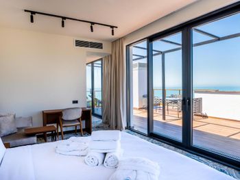 Новый и опрятный отель. Хороший интерьер ресторана и вкусная кухня. Просторный и светлый номер. Прекрасный вид на сад и на море. Относительная близость к морю. Пол часа езды по пробкам к городу, это в целом приемлемо.