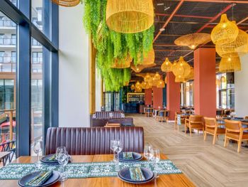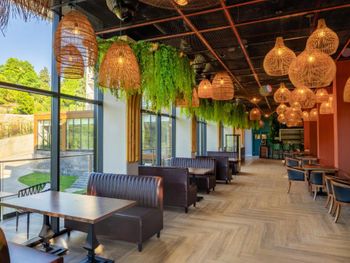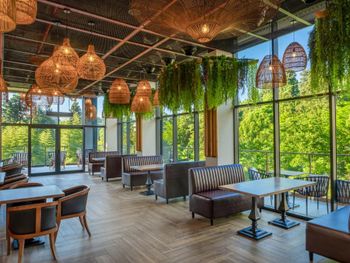 Отличное расположение, прямо у входа в парк. Классный ресторан с вкусной едой. Дружелюбный персонал.