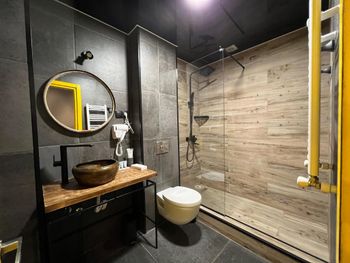 - ужасный прокат снаряжение все убитое и старое и цена дороже чем у остальных. -Паркинг не чистят ! люди падают постоянно -внутренний дизайн на любителя нам не понравился. -вай фая пропадает каждых 5 мин в комнате или вообще его нету. -в души вода то теплая то кипяток. -перебои в электричестве ... 3 раза вырубало во всем отели. в это время был свет в отели на против ... -как не придешь в лобби так всегда отсутствуют сотрудники. -баня совсем не баня, 20 минут просидеть и не вспотеть -очень грязная уборная в лобби. - протекает крыша в бассейне. -в релакс-рум сидела рабочая и смотрела ролики в телефоне на весь звук.... когда видно что люди лежат отдыхают ... это вообще меня убило -в релакс-рум рабочие выходят на балкон курить и запах просто не выносим так как дверь постоянно открыта и еще холодный воздух попадает в комнату, - нету хинкали в ресторане. -попросили у сотрудников ресторана просто пожарить нам хинкали куплены ранее в другом мести. за отдельную оплату. в ответ получили отказ. так и так ресторан был пустой но менеджеры решил что это неприемлемо подогреть 5 хинкали на сковороде... -сотрудники грубят когда объясняешь что какой-то вопрос хотели решить. Несмотря на то что нам не предоставили номер который бронировали еще и упрекали что типа лучше номер предоставили. ну в общем нам не понравилось это был первый и последний наш визит в этом отели