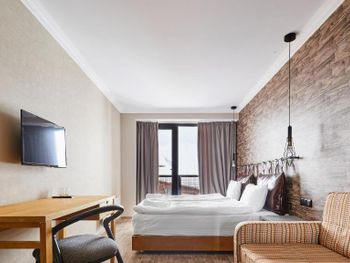 Отель новый, стильный. Хорошее постельное белье и полотенца. Гостеприимный и дружелюбный персонал. Отель очень удобно расположен, на спуске, близко к подъемнику. Мгновенная реакция персонала на не исправный радиатор.