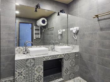 Не стоит останавливаться с этом отеле если для вас важна : - звукоизоляция номеров (она отсутствует напрочь, в номере очень слышно всё, что происходит в коридоре и наоборот) ; - приветливый персонал (он тут максимально неприветливый, а отдельные сотрудники и вовсе грубят постояльцам, закатывают глаза, а на рецепшн висят в "шутку" агрессивные таблички в стиле - "тупой вопрос 1$, тупой ответ 2$, нормальный ответ - 4$ итд...". Шутка с долей правды); - хороший фен (он работает максимум 30 секунд, прежде чем отключается и нужно ждать минуту пока он остынет, прежде чем он включится снова - девушкам с длинными волосами на заметку) ; - дверь в туалет (считайте, что её вовсе нет, она стеклянная, с просветами в сантиметр по периметру все звуки из туалета слышны в номере, можно только воду включить или музыку чтобы получить жалкое подобие приватности); - качественная еда (в ресторане есть ощущение, что на всём максимально экономят, от помидоров, до сока, все продукты дешевые). Отдельно стоит отметить СПА зону на 7-ом этаже, где оба джакузи не работали. Вид из окон из бассейна - вы ничего не увидите, они запотевают. Короче говоря, 5-ю звездами не пахнет, максимум на 3 или 4 с минусом тянет это место.