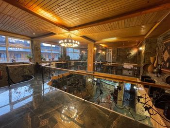Из отеля до подъемников с лыжным оборудованием тяжело дойти самим, приходилось пользоваться их бесплатным трансфером, который по утрам отвозит с 10.00 до 11.00 утра, по вечерам забирает с подъемника с 16.00 до 17.00. В принципе это не вызывало каких-то неудобств. В другое время это платно, так что прошу учесть! Такси в Гудаури очень дорогое. За проезд от подъемника до отеля платила 10 лари и это всего 2 минуты езды!!!