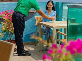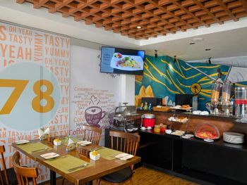 Отель расположен в относительно тихом месте. Вообще это достаточно шумный город и по ночам очень хорошо слышны скутеры, они под окнами гоняют всегда. Этот отель расположен удачно и возле него не так много скутеров. Это мой 6 раз, когда перед вылетом останавливаюсь в отеле в городе на 1 ночь. И мне есть с чем сравнить. В их ресторане заказывали ужин, цены как и везде (+-15$ за человека), еда была вкусной. Отель новый, номера еще свежие. Но на этом пожалуй все, остальное не понравилось