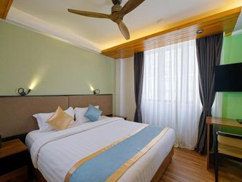 Номер красивый , просторный , с шикарным видом на море , кондиционер работал отлично , а не вполсилы , как в некоторых отелях на Мальдивах . Трансфер из/в аэропорт организован четко , очень удобно , встречают прохладительными напитками , на рецепции все очень подробно объясняют , скромный , но вкусный завтрак . Рядом пляж, где можно при желании отдохнуть . Спасибо за гостеприимство !