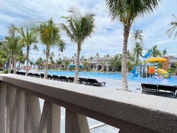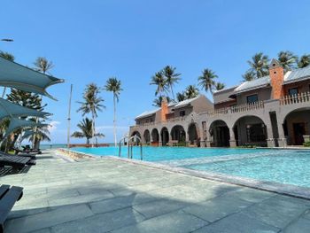 Отличный выбор на завтраках. Номера удобные. Персонал очень приветлив. Сервисом остались довольны. Как-будто находится вдалеке от основных тусовочных мест, но это вообще не напрягает, особенно, если взять мотик в аренду. Такси тоже дешевое (установите приложение Grab). Пляж собственный, с лежаками, чистый. По утрам можно было заплывать без волн, после 10 уже проблематично. Мы были в конце декабря, в это же время в отелях, что ближе в сторону Фантхьета волны были постоянно, и там даже утром было тяжело проходить прибой.