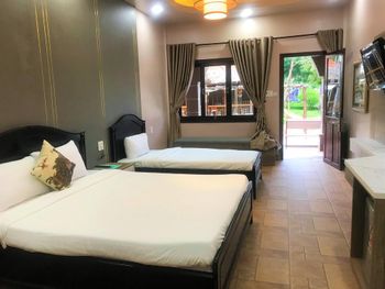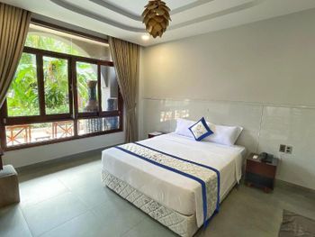Отдыхали семьей 3 человека! Огромное спасибо персоналу отеля за прекрасный отдых !!! Неожиданный бонус ожидал нас , повысили категорию номера бесплатно ( бронировали 27 м ) предоставили огромный номер 42м на первом этаже возле бассейна и уединенном месте без детей ! На ресепшн девушка прекрасно понимает и разговаривает на русском языке ! Питание шведский стол завтрак и кофе брейк с 14-16.30 !!! Вкуснейшая и разнообразная Вьетнамская кухня , причем всегда 3 вида мяса , пельмешки, супы , омлеты , фрукты, овощи, выпечка и сладости))) И конечно необыкновенно вкусный кофе , причем 2 вида : мокко , крепкий , бодрящий с привкусом шоколада и вьетнамский менее насыщенный , но также очень вкусный !!!! Территория с прекрасными цветами и повсюду банзай ! рекомендую данный отель твердая 4 !