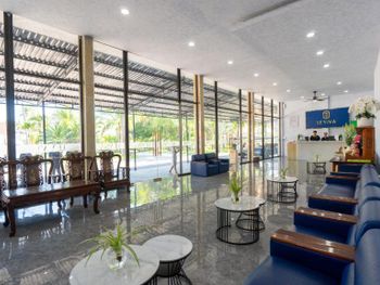 Отличный выбор на завтраках. Номера удобные. Персонал очень приветлив. Сервисом остались довольны. Как-будто находится вдалеке от основных тусовочных мест, но это вообще не напрягает, особенно, если взять мотик в аренду. Такси тоже дешевое (установите приложение Grab). Пляж собственный, с лежаками, чистый. По утрам можно было заплывать без волн, после 10 уже проблематично. Мы были в конце декабря, в это же время в отелях, что ближе в сторону Фантхьета волны были постоянно, и там даже утром было тяжело проходить прибой.