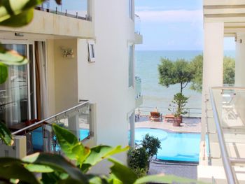 Самый дешевый номер никогда не бронируйте - там очень очень убого, я такого не ожидала, т.к. фото номеров все красивые были, когда бронировала. В комнате очень темно (первый этаж) и ооооочень шумно от дороги, потому что эти дешевые номера к ней ближе всего. Шумно настолько, что ночью, а особенно под утро спать невозможно. В более дорогих номерах, которые ближе к морю, наверное тише. Вечером не было горячей воды в душе никогда, хотя днем была. Кровать на железном каркасе, неудобная.