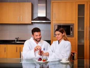 The spacious, air-conditioned rooms at Hala Arjaan by Rotana, Deluxe Hotel Apartments have modern furnishings, a large satellite TV and a spacious seating area. The kitchenettes feature a microwave, refrigerator and a tea/coffee maker.