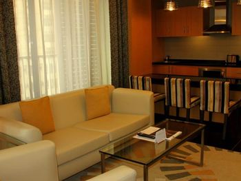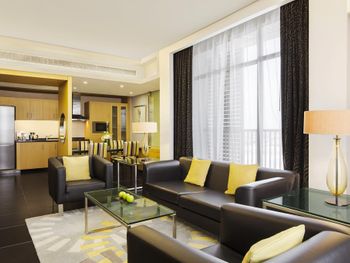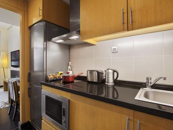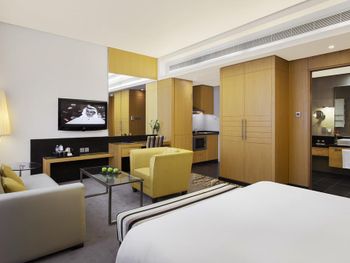 The spacious, air-conditioned rooms at Hala Arjaan by Rotana, Deluxe Hotel Apartments have modern furnishings, a large satellite TV and a spacious seating area. The kitchenettes feature a microwave, refrigerator and a tea/coffee maker.