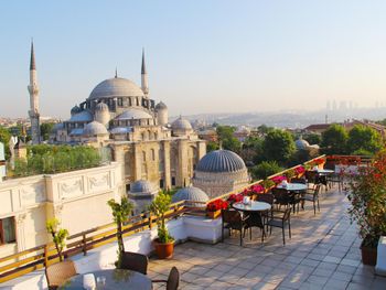 В отеле Ramada Plaza Sultanahmet работает ресторан русской и турецкой кухни с обслуживанием по меню, а также ресторан турецкой и европейской кухни, в котором блюда подают на террасе с видом на Стамбул.