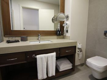 Очень долго ждали поселение с саленьким ребенком. Брон ровали 2 номера как семья,номера дали далеко друг от друга. Окно паломано,очень дует. На рецепшне не компетентные сотрудники.селилась группа,мы ждали 40 мин.пока не стали скандалить. В ванной комнате очень холодно. На 5 звезд не тянет
