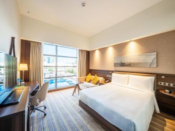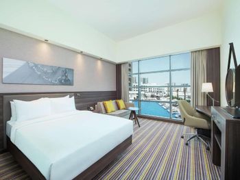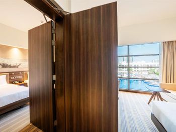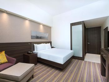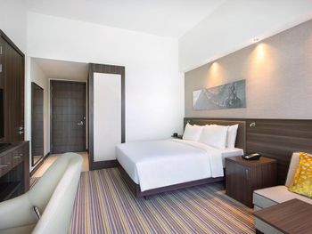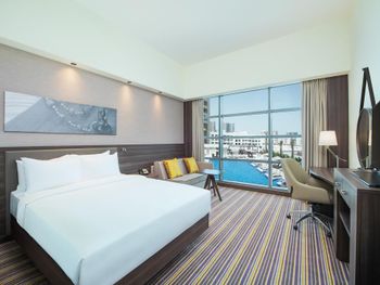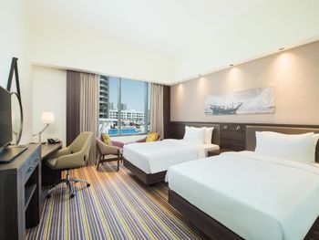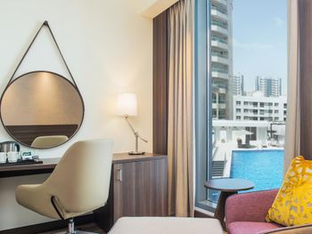 Останавливались на сутки между рейсами. Мы приехали утром, заселили быстро, несмотря на раннее заселение. Номер чистый, есть всё необходимое даже утюг с гладильной доской. Метро 10 минут пешком. Рядом супермаркет. На пляж не ездили. Завтрак очень хороший. Утром уехали на бесплатном шатле в аэропорт Дубай.