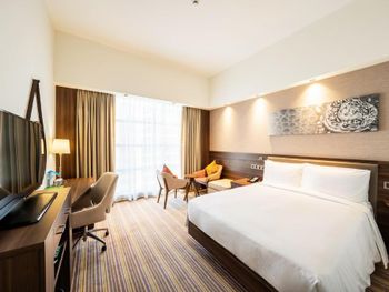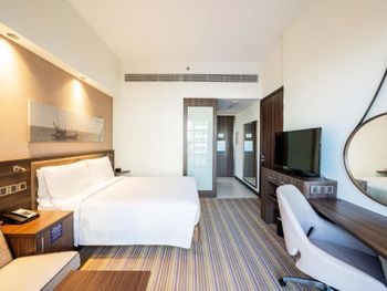 Люди в ресепшине вежливые, завтрак шведский стол, но комната была была убрана плохо когда мы входили под столом лежал мусор из сьеданного граната. Поскольку это было вынужденная бронирование между рейсами все хорошо. Есть бесплатный трансфер туда и обратно обратно